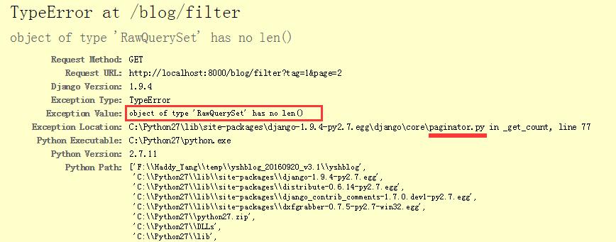2)Django自带的分页器Paginator由于需要统计个数,所以会使用len()方法。若不做其他任何处理会出现如下错误: